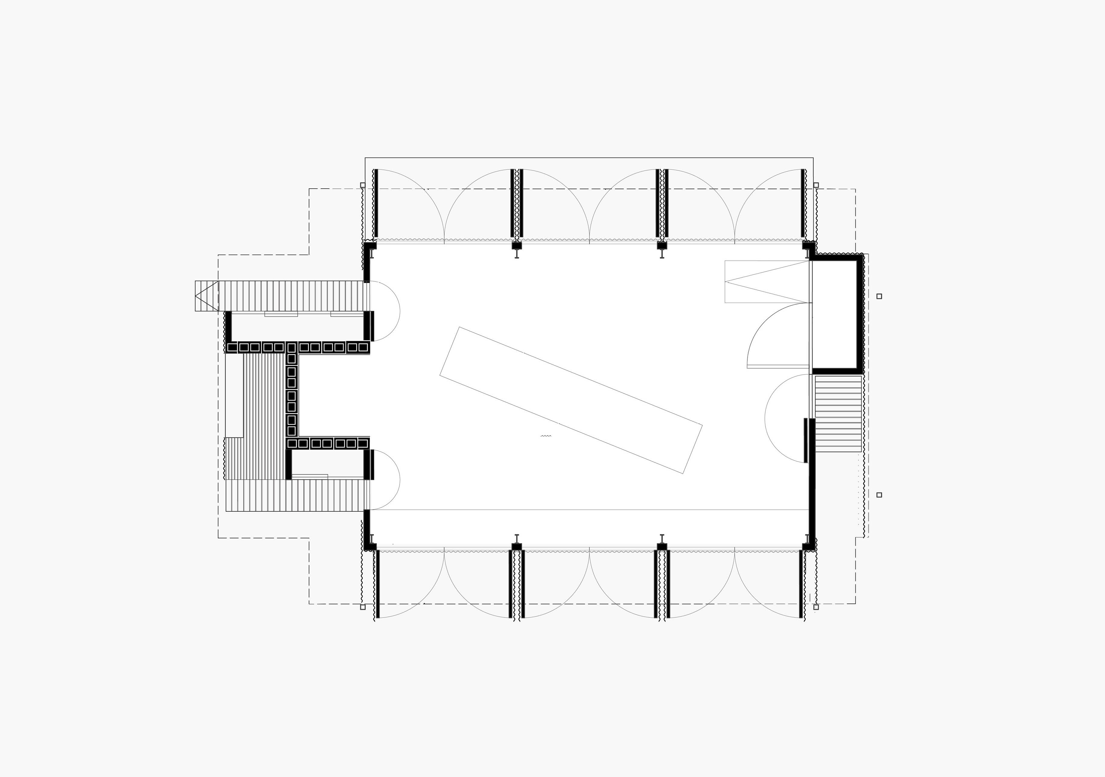 All existing cladding is to be recorded and reused, along with the rich - if not affordable - marine grade plywood linings. All windows are to be removed and filled in with solid doors, accentuating the vault. Only two large windows above eye level each end provide daylight.